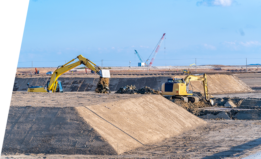 土地の埋め立てや盛土など、建設のために必要な環境を整える工事です。